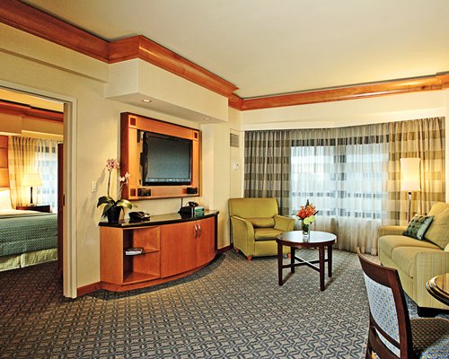 The rooms are designed with your comfort and convenience in mind. All accommodations feature plenty of space and great amenities, including king-sized beds, 55-inch TVs and WiFi access. Make use of the services and facilities available to you as guests of Hilton Club New York. Unwind with a workout in the modern fitness center, or indulge in an in-room spa service. Need to rejuvenate? Hair and make-up services are also available in-room.