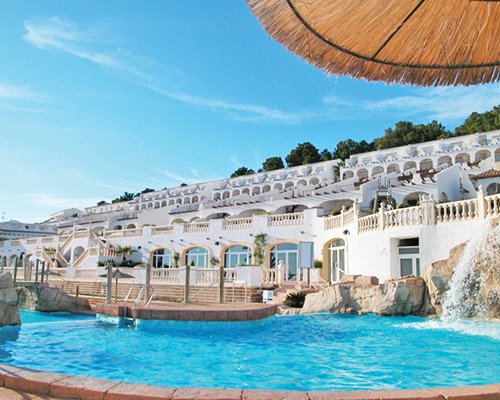 The charming timeshare bungalows similarly satisfy the whole family. Each features a patio that boasts stunning views of the complex while amenities like air conditioning and heating, satellite TV, DVD player, and Hi-Fi, fully equipped kitchen, and bathroom with a hairdryer ensure utmost comfort throughout your stay.