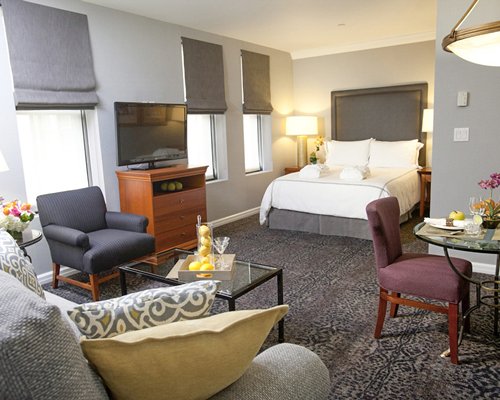 The unmistakable New York flair pervades every inch of The Manhattan Club. For guests thirsty to experience the finer things in life in the big city, there is no better address in New York, USA than this glamorous, four star all-suite hotel. The fifty guest rooms here are luxurious. Each has an elegant residential design and contemporary style that creates sophisticated timeshare spaces with a relaxing ambience. Gorgeous city views are offered by each and every one, as well as unique furnishings and high quality amenities including plush fabrics, pillow-top mattresses, silky linens, queen beds, full size sleeper sofas and large seating areas, marble baths, free Wi-Fi access, flat-screen TVs, air-conditioning, and kitchenettes.