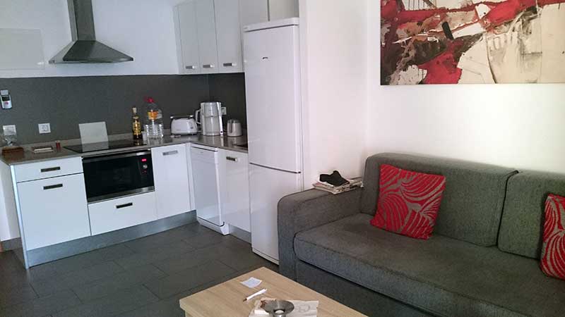 The apartment is a suite with 2 bathrooms, 2 bedrooms with double beds, large balcony with jacuzzi, table, chairs and sunbeds, air conditioning, large pool area, small pool for children, bar in common area, fitness room, mini golf, well-equipped k...